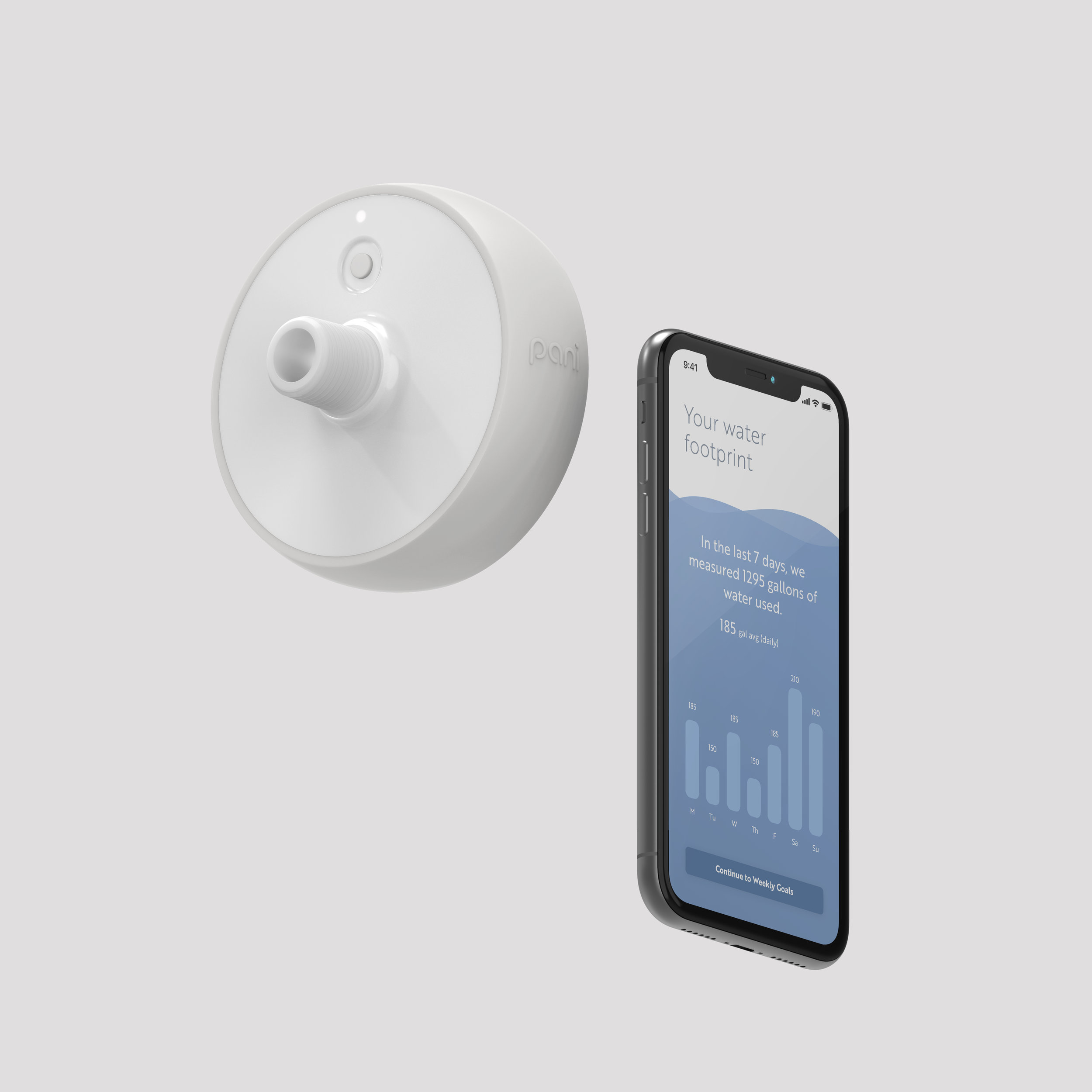 Introducing the Pani Smart Water Monitor. Keep track of how much water you use every day. So you can use less and save more.